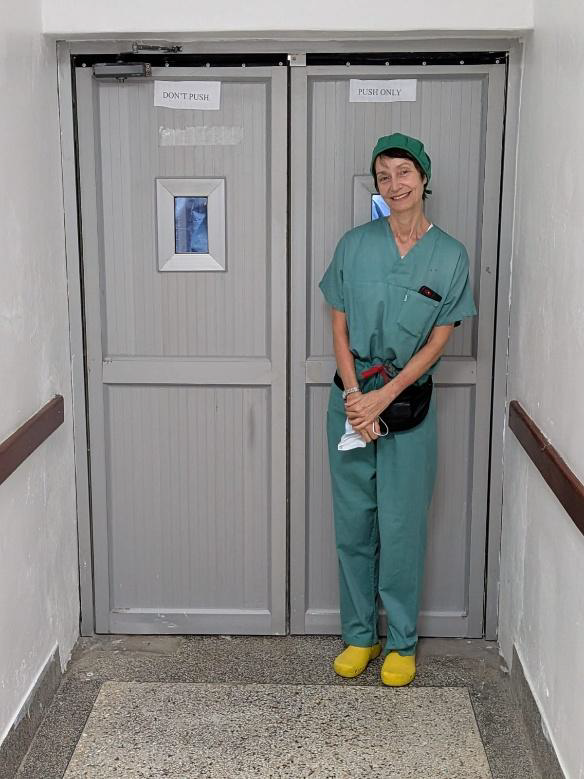 Michael, who is not small, had some difficulty adapting to the operating theatre with an operating table that was too low!