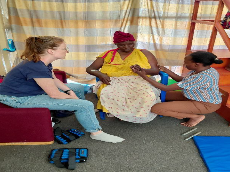 Dianah is alone and is studying for a bachelor’s degree – which we sponsor – attending classes at weekends and returning to work on Mondays. She is overwhelmed with requests and also cares for disabled people, including many children with cerebral palsy. Her working conditions are difficult. She sees patients in a container that is difficult to access for wheelchair users or people with walking sticks because it is located on rough ground with no marked path.