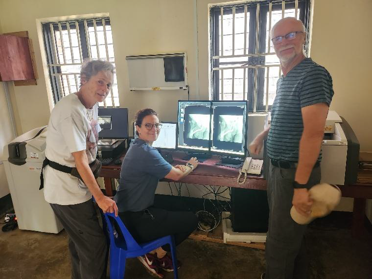 De Numerous X-rays were necessary for diagnosis and post-operative follow-up. We were visited by Herman, a specialist in PACS and AI, to help improve image transfer conditions. The aim is to find a solution that would avoid printing X-rays, as the films are very expensive.