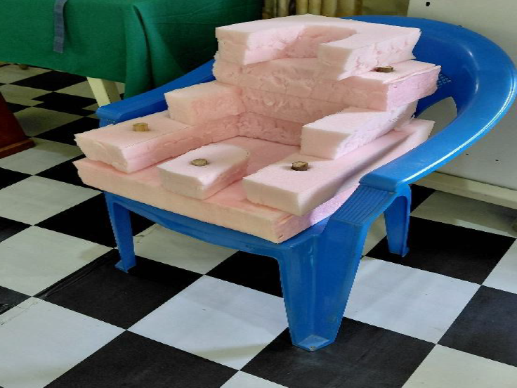 Et pour participer en ergothérapie à la confection d’un siège pour un patient dont la colonne est tellement tordue qu’il ne peut s’assoir droit.
